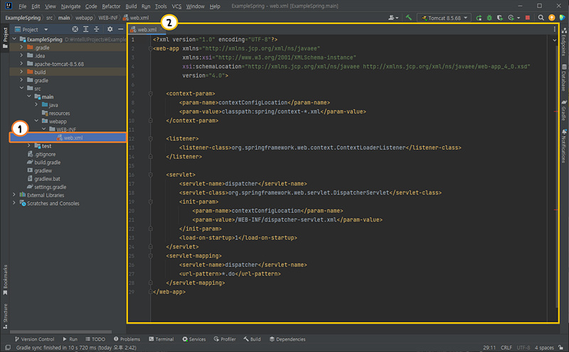 웹 서버의 요청을 받는 Spring 설정 파일인 web.xml 파일을 생성한다.