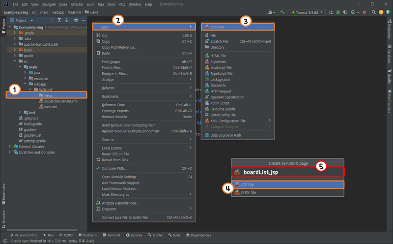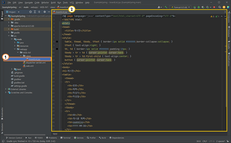 views 디렉토리가 생성되면 views 디렉토리 내부에 boardList.jsp 파일을 생성한다.