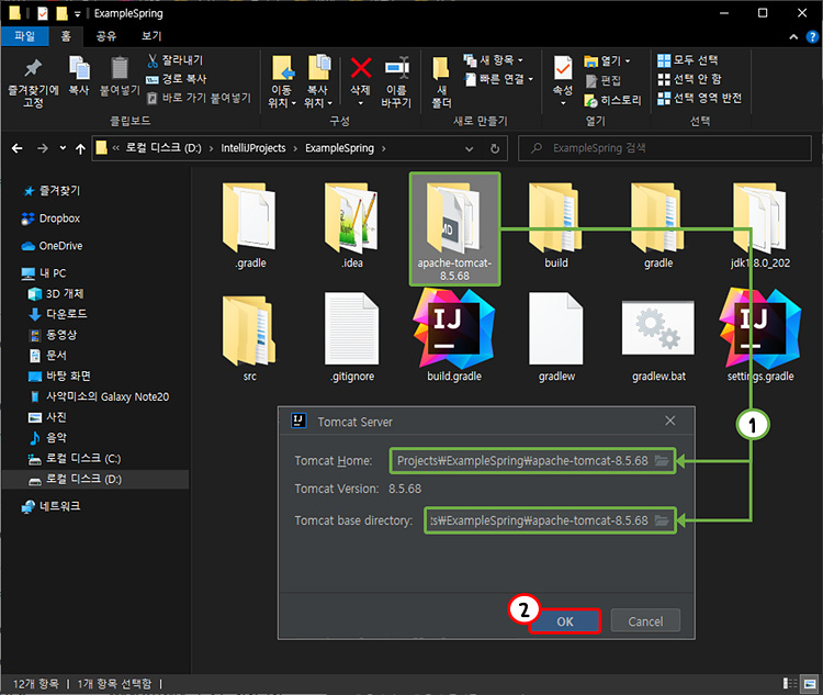 설치된 Tomcat Server의 경로를 묻은 팝업창이 오픈된다.