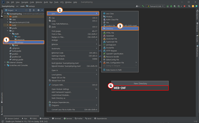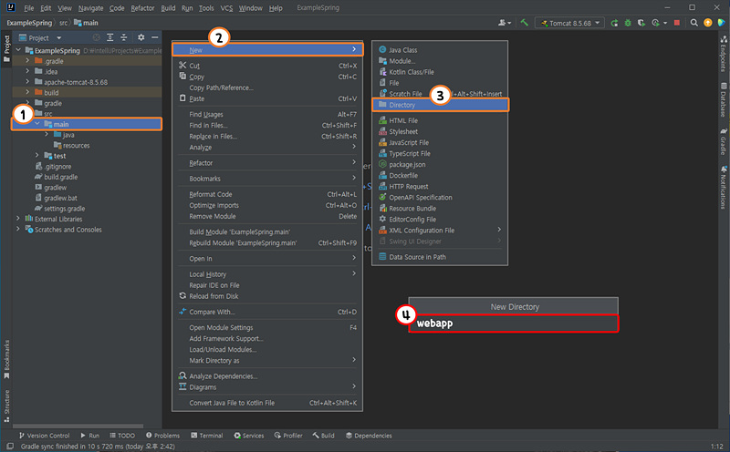 먼저 src/main 경로에 webapp 이라는 디렉토리를 하나 생성한다.