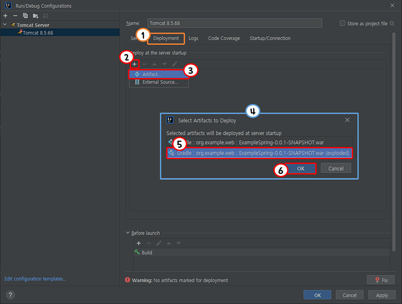 Select Artifacts to Deploy 팝업창이 오픈되면