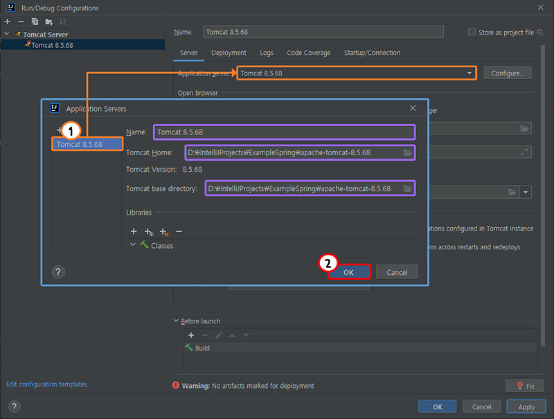 Application Server에 Tomcat이 추가되었다면 OK 버튼을 클릭한다.