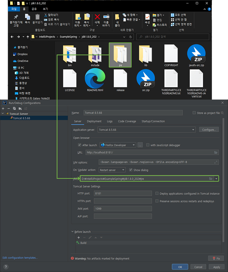 다운받은 JDK 디렉토리 안에는 jre 디렉토리가 존재할 것이다.