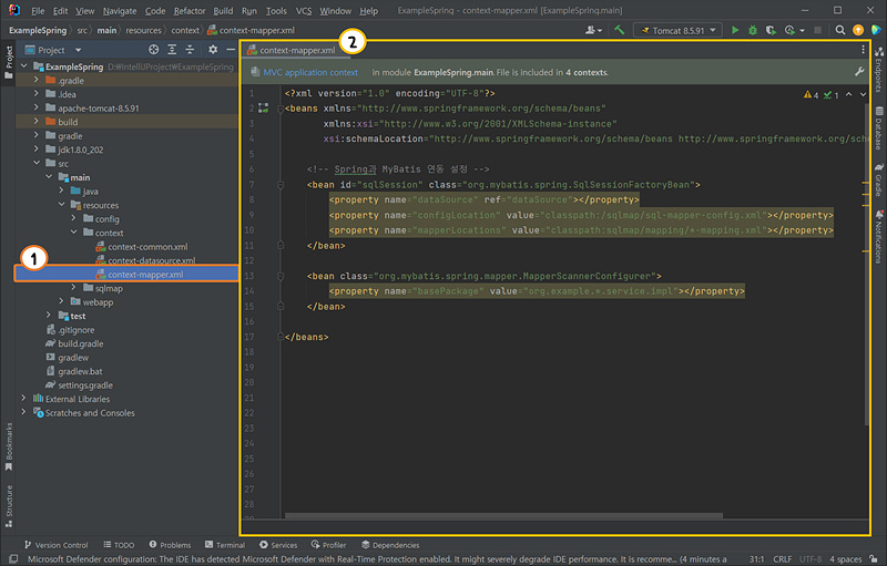 05. applicationContext.xml 파일에서는 빈(Bean) 객체의 정의와 의존성 관계를 설정합니다.