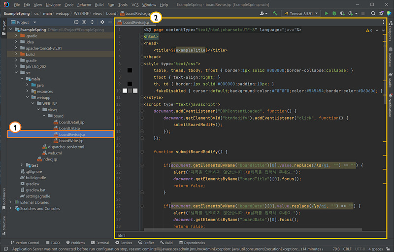 boardRevise.jsp이 추가되었다면 게시글 수정을 위한 코드를 작성한다.