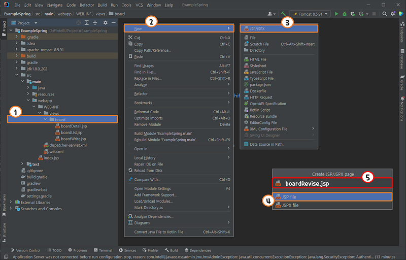 board 디렉토리를 선택하고 boardRevise.jsp 파일을 추가한다.