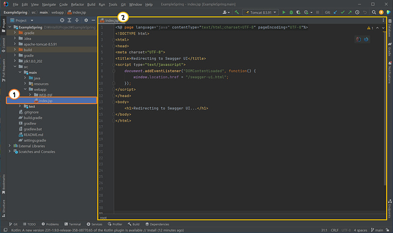 1) Swagger API 문서 페이지를 시작페이지로 설정