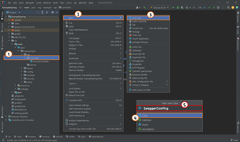 build.gradle을 열고 Dependencies에 Swagger, Swagger-UI 라이브러리를 추가하여 준다.