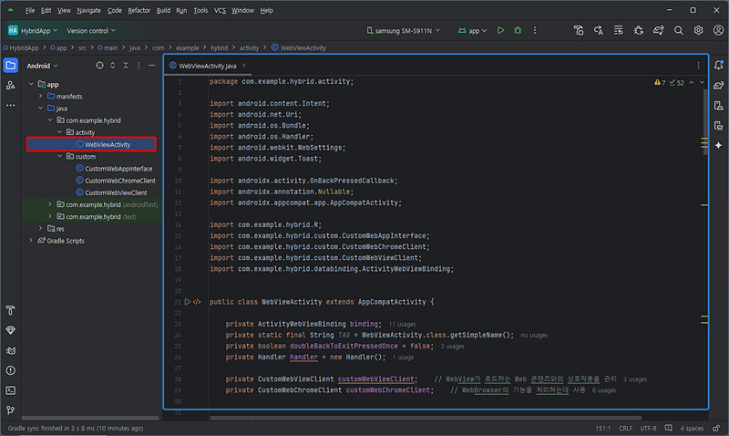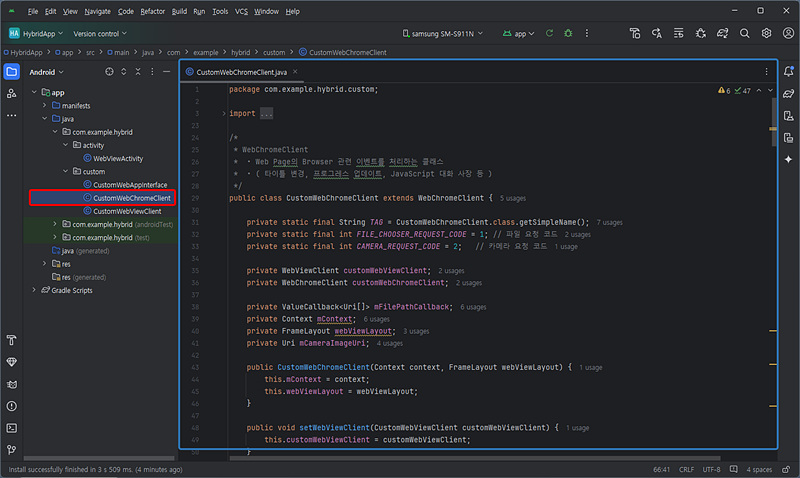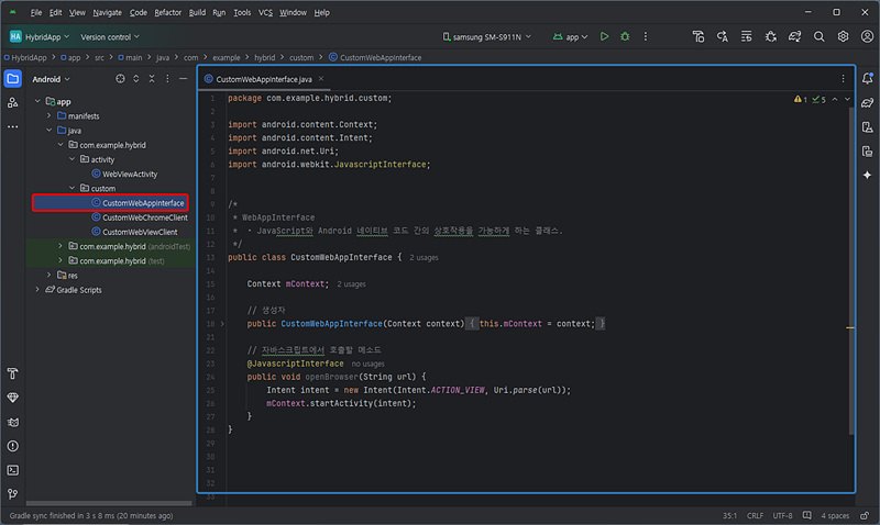 * • JavaScript와 Android 네이티브 코드 간의 상호작용을 가능하게 하는 클래스.