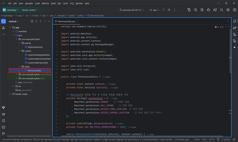 [Android] 권한 관리 Utility 클래스 구현 가이드(카메라, 전화, 위치)