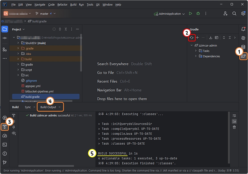 Build Output 팝업창에 BUILD SUCCESSFUL 메시지가