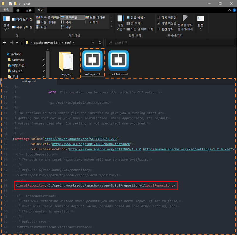 D:\spring-workspace\apache-maven-3버전\conf 경로의