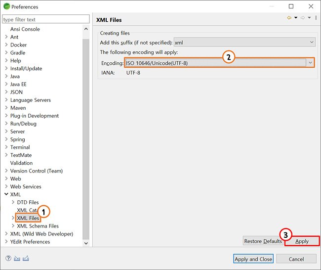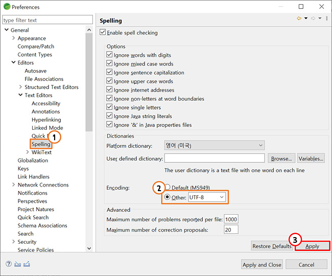 Apply and Close 버튼을 클릭하여 환경설정 창을 닫아준다.