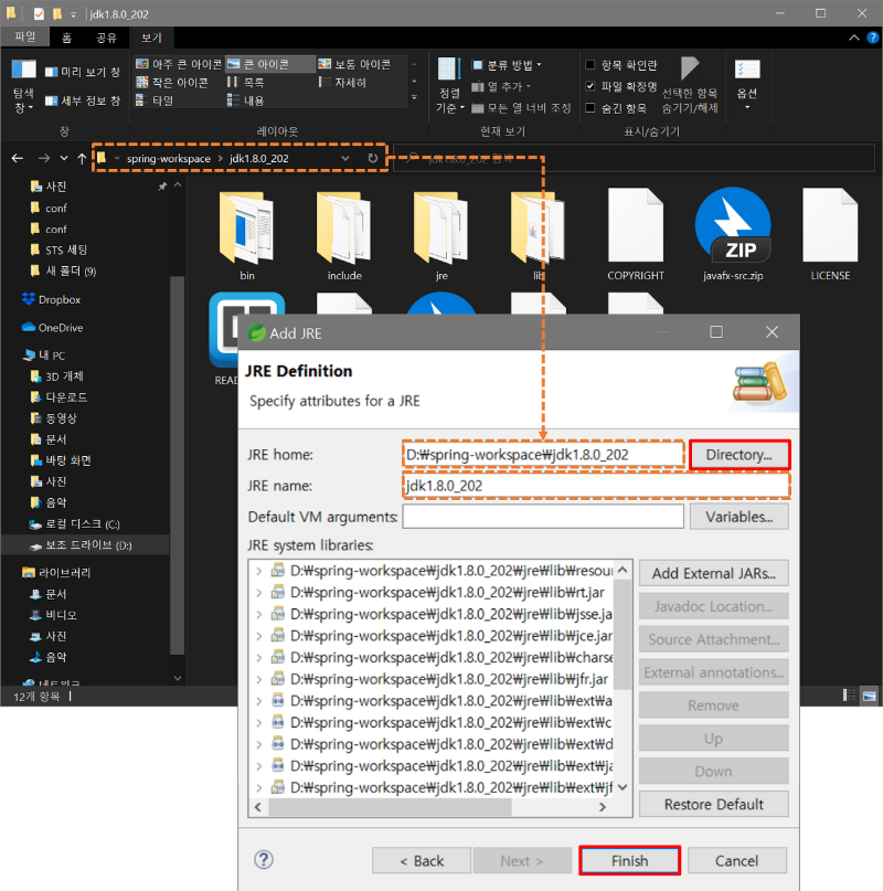 JRE Definition 창이 Directory 버튼을 클릭하고