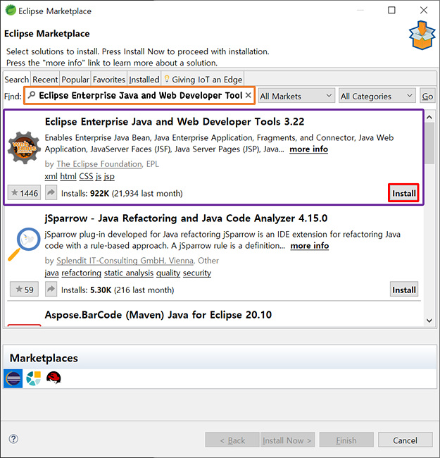 「Eclipse Enterprise Java and Web Developer Tools」 검색