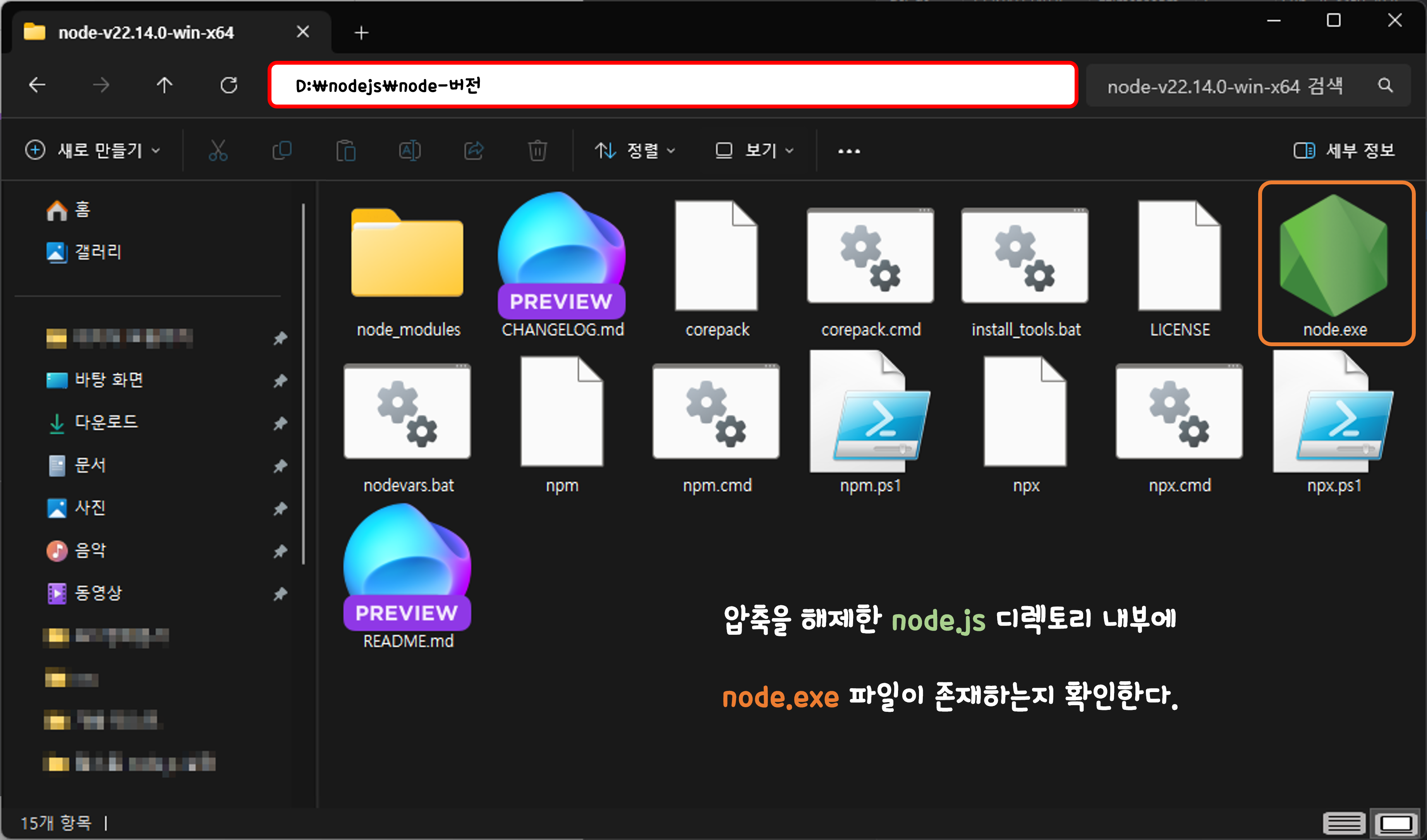 [ node.exe ] 파일이 존재하는지 확인한다.