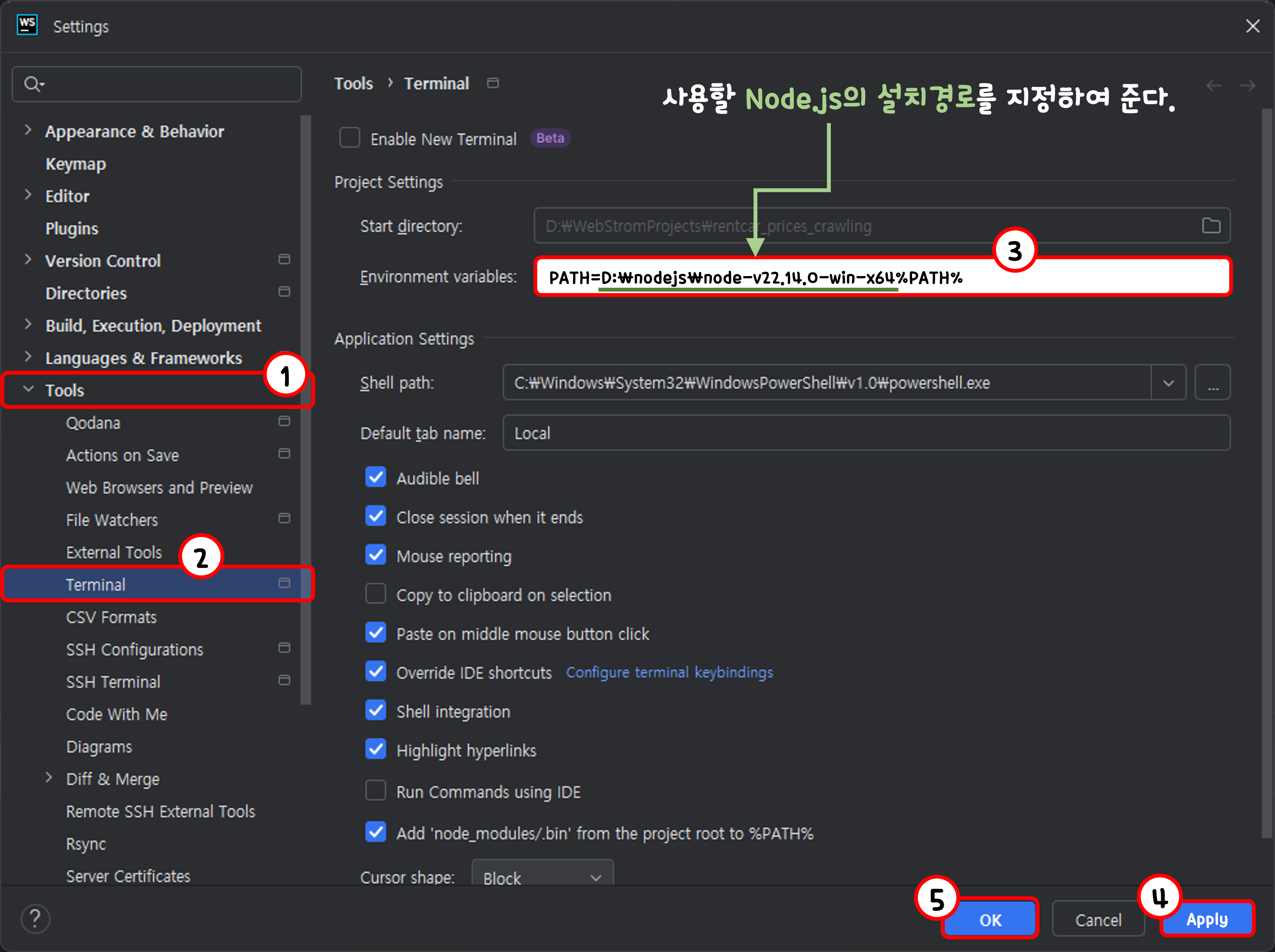 | Node interpreter | D:\nodejs\node-버전\node.exe |