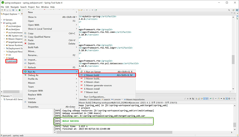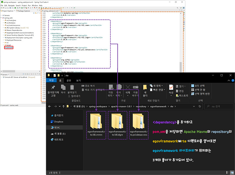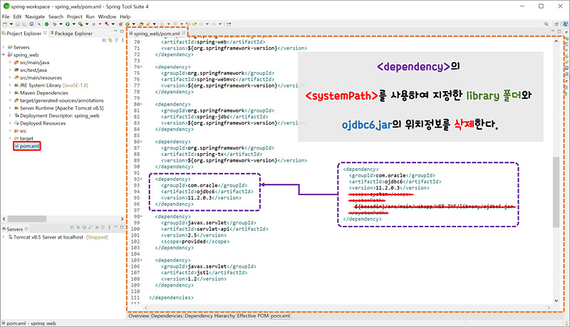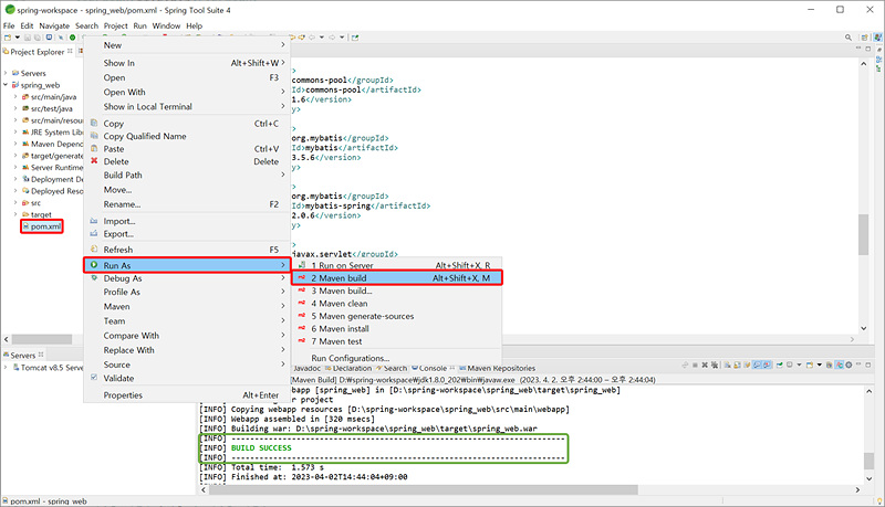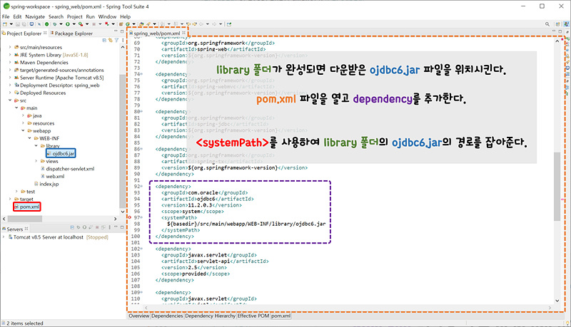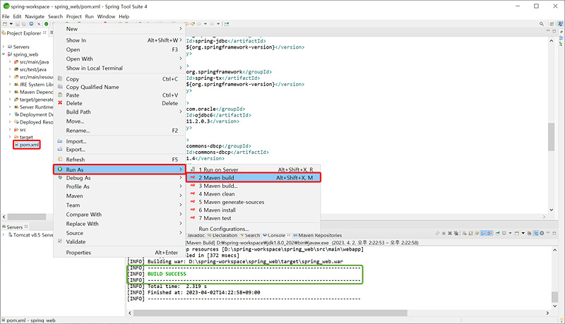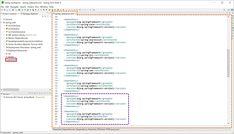 pom.xml 파일을 열고 Spring-jdbc, Spring-tx 파일을 추가한다.