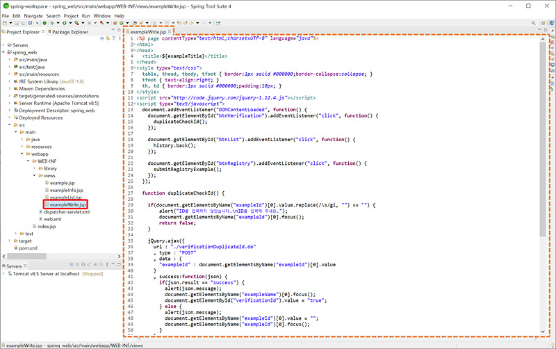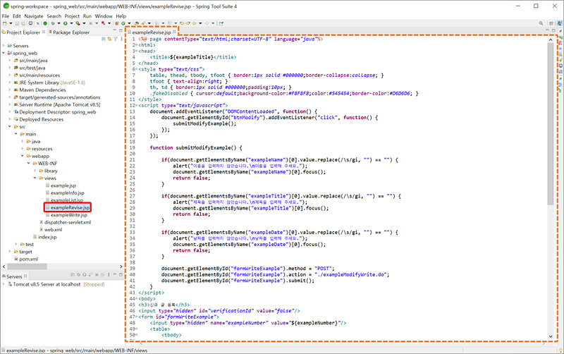 exampleRevise.jsp 파일이 생성되면 아래 코드의 내용을 추가한다.