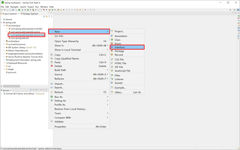 · 비즈니스 레이어는 Service 인터페이스와 ServiceImpl 클래스 등으로 구성된다.