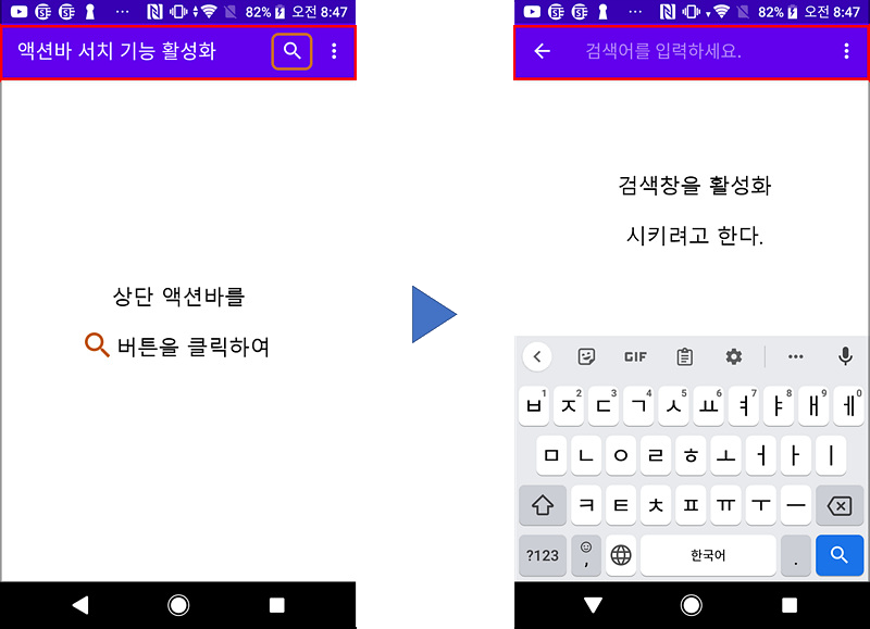 actionBar.setTitle("액션바 서치기능 활성화");